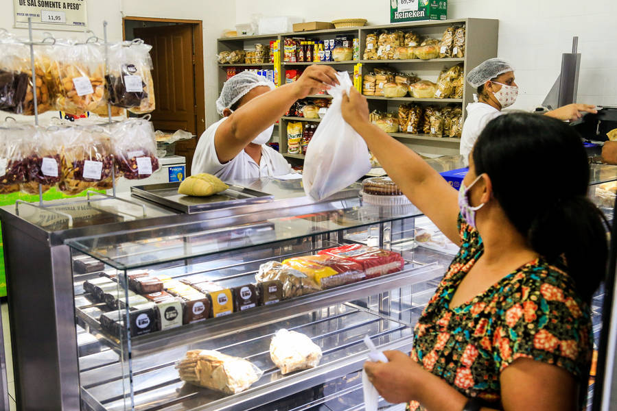 Venda de pães e outros produtos em padaria Brasilia, na Rua Comendador Palmeira, 160 – Farol, Maceió. Alagoas – Brasil.