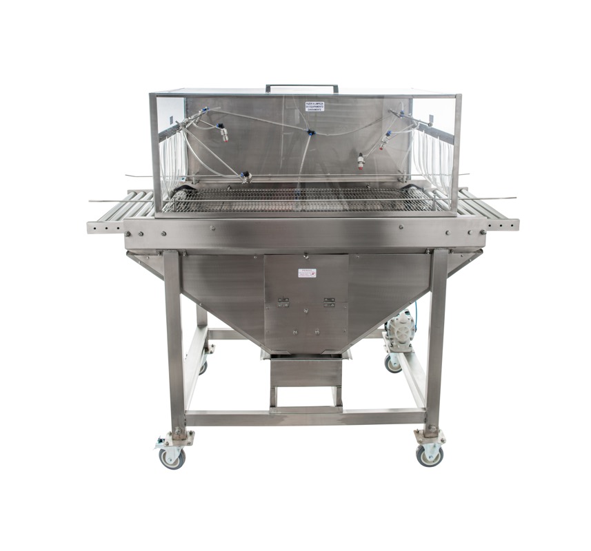 Roletes na entrada e saída do equipamento para fácil acoplagem em outras máquinas e mesas.
